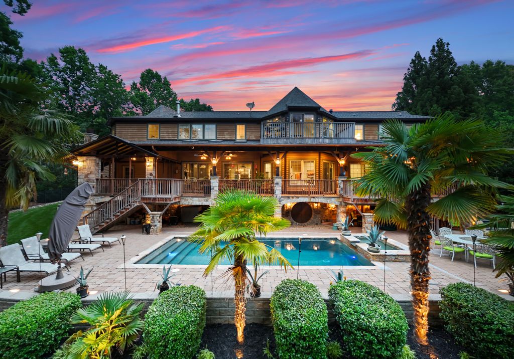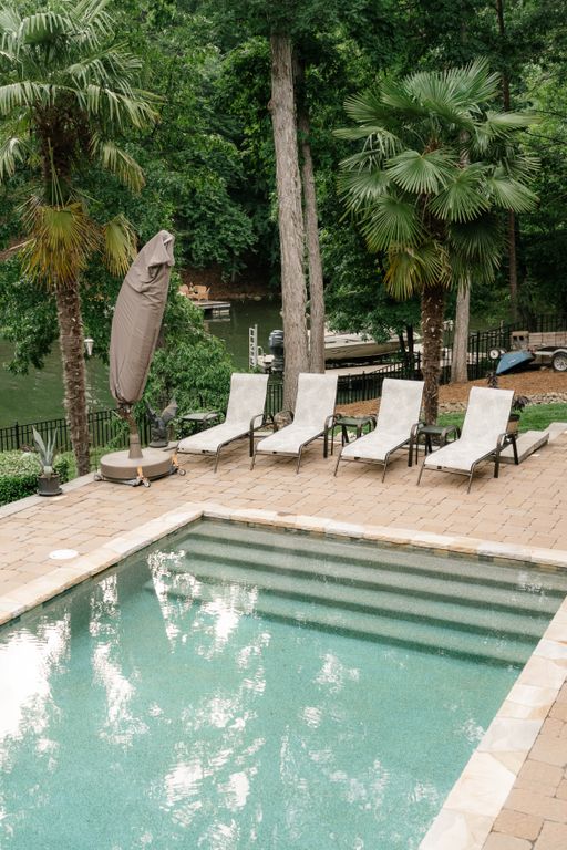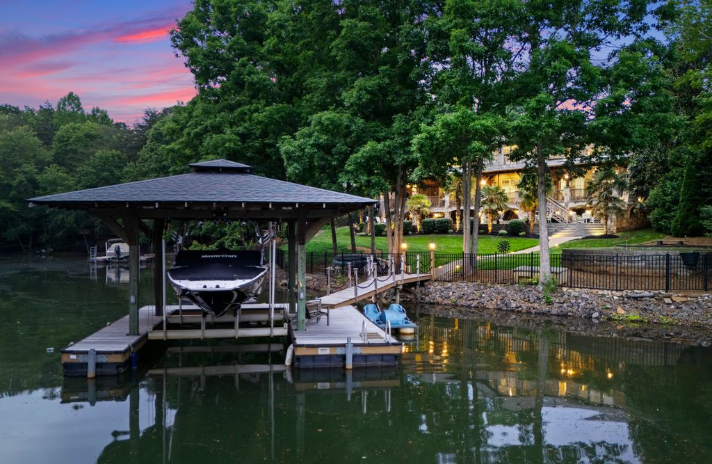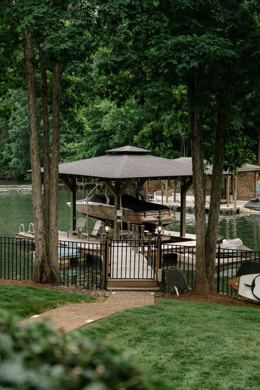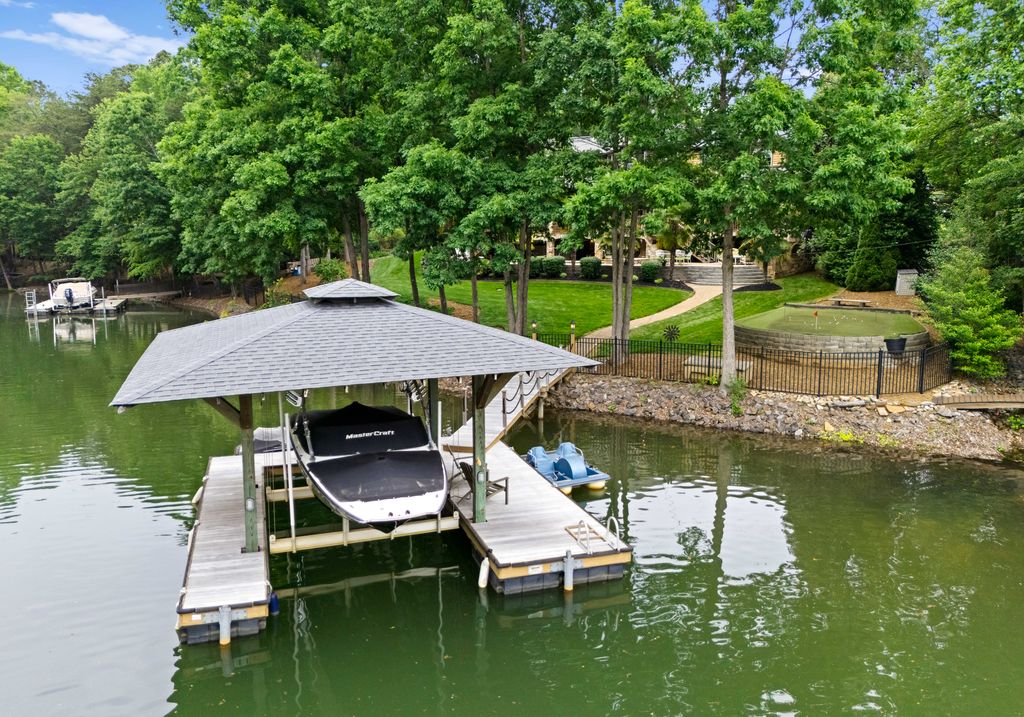 Live the Lake Norman lifestyle in this exceptional waterfront retreat, crafted for elevated entertaining & effortless relaxation. A private dock with covered boat slip sets the stage for life on the water, while the sparkling pool & spa, outdoor fireplace, putting green, & expansive deck offer resort-style living at home. The open floor plan showcases rich hardwoods, a gourmet kitchen with large island, high-end appliances, bar, pizza oven, and an inviting wine cellar & tasting room with beer taps as well. Two luxurious primary suites—one on each level—offer flexibility and comfort. A custom stone fireplace anchors the covered sitting area, perfect for year-round gatherings. Movie nights await in the dedicated theater room, and an abundance of storage ensures everything has its place. With exceptional indoor and outdoor living, thoughtful design, Control4 smart home technology and every amenity at your fingertips, this rare Lake Norman offering is as functional as it is unforgettable.