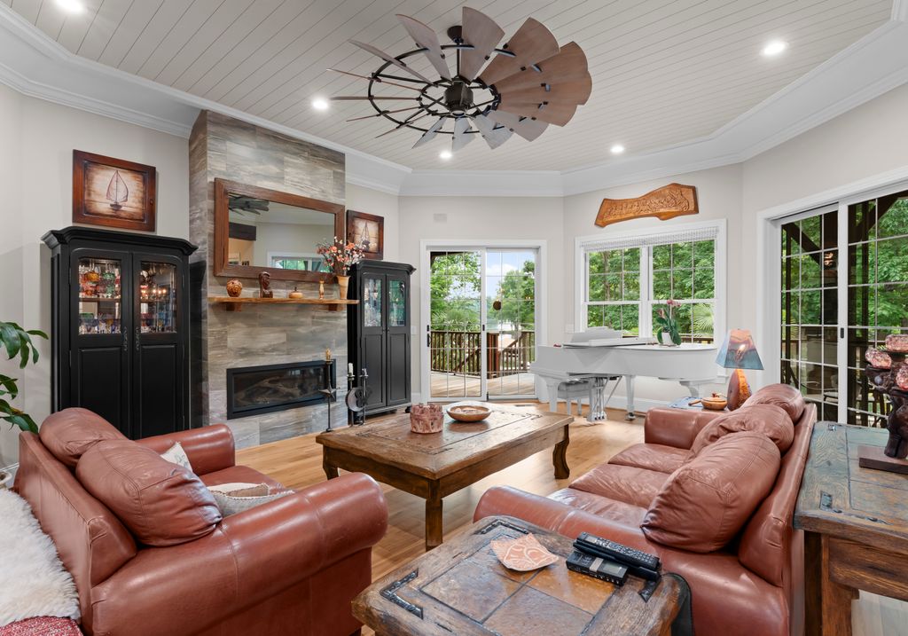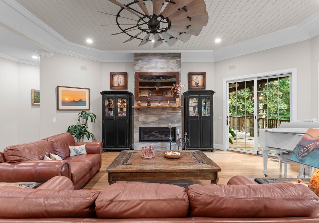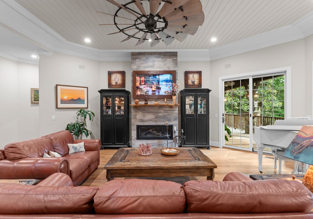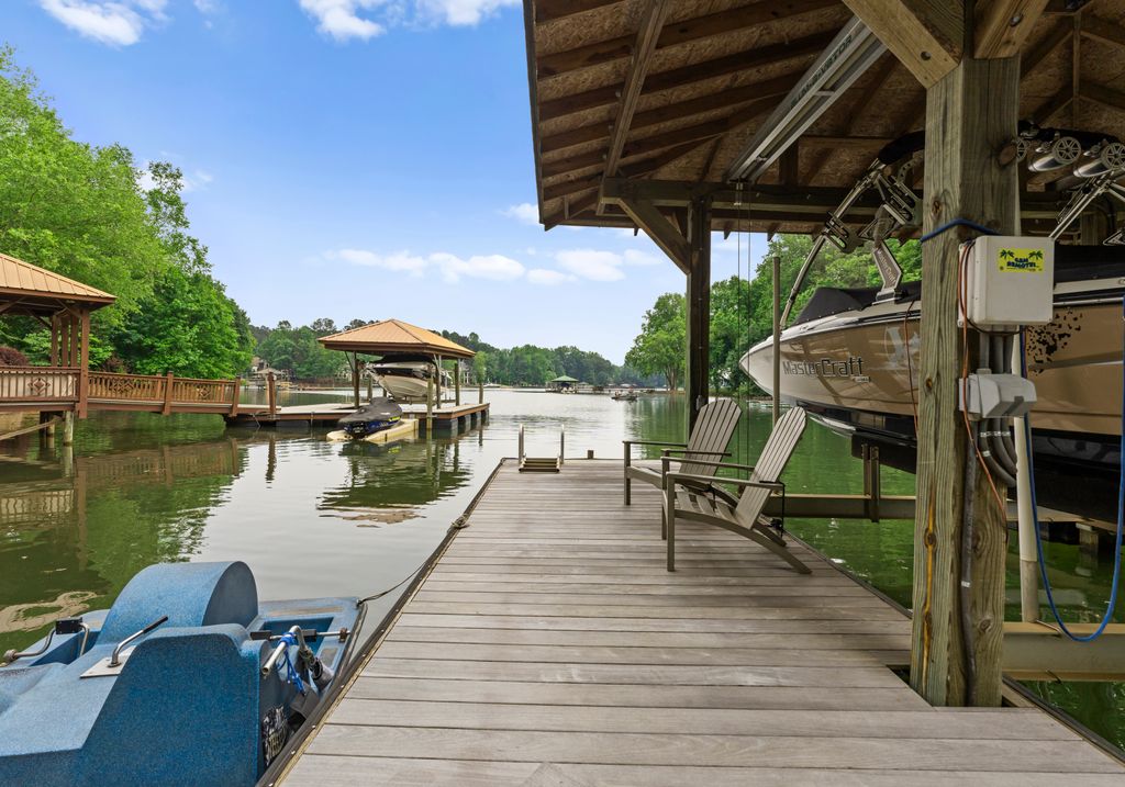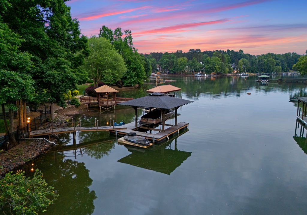 Live the Lake Norman lifestyle in this exceptional waterfront retreat, crafted for elevated entertaining & effortless relaxation. A private dock with covered boat slip sets the stage for life on the water, while the sparkling pool & spa, outdoor fireplace, putting green, & expansive deck offer resort-style living at home. The open floor plan showcases rich hardwoods, a gourmet kitchen with large island, high-end appliances, bar, pizza oven, and an inviting wine cellar & tasting room with beer taps as well. Two luxurious primary suites—one on each level—offer flexibility and comfort. A custom stone fireplace anchors the covered sitting area, perfect for year-round gatherings. Movie nights await in the dedicated theater room, and an abundance of storage ensures everything has its place. With exceptional indoor and outdoor living, thoughtful design, Control4 smart home technology and every amenity at your fingertips, this rare Lake Norman offering is as functional as it is unforgettable.